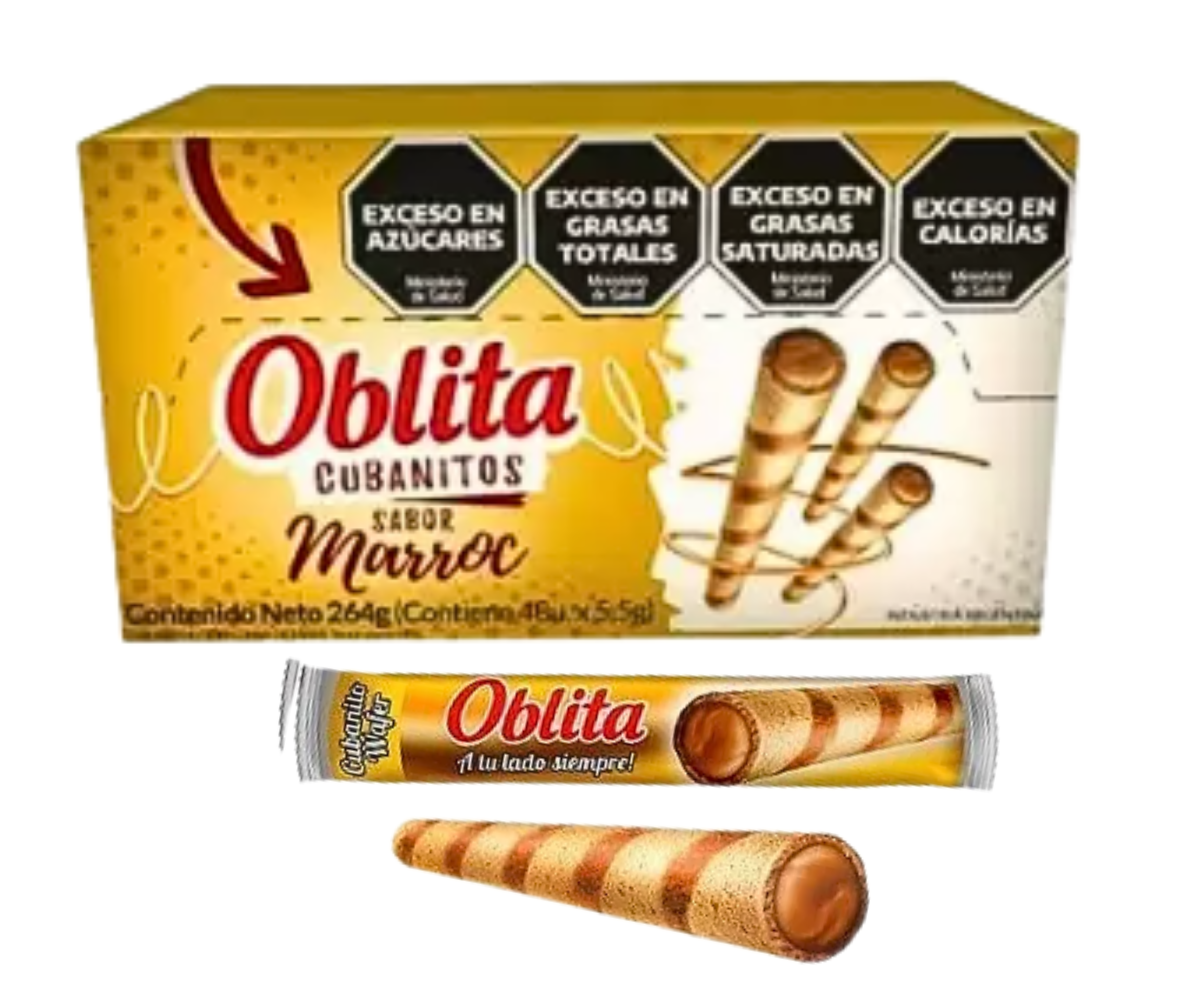 El Cubanito Oblita de Marroc es una oblea rellena con crema sabor a marroc, una combinación clásica de pasta de maní y chocolate.