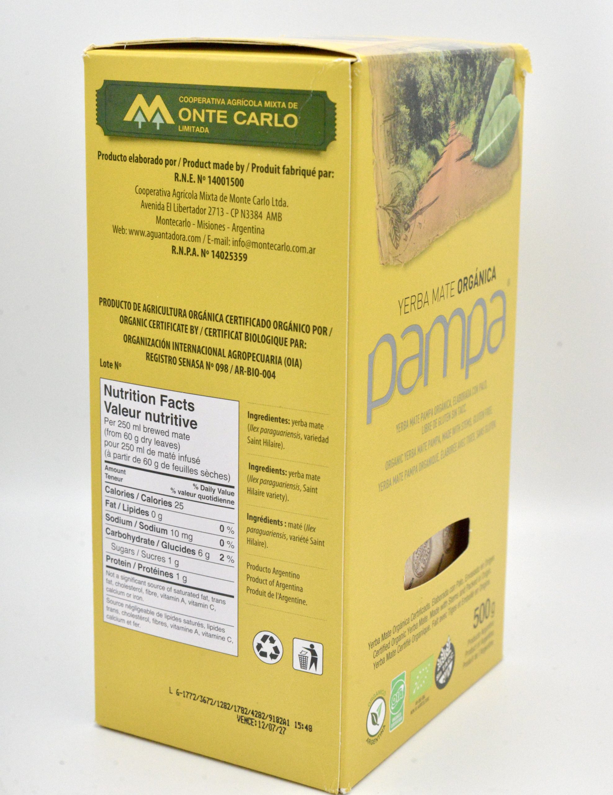 Pampa Orgánica es una Yerba mate Orgánica tradicional, elaborada con palo bajo un estacionamiento natural de 12 meses.