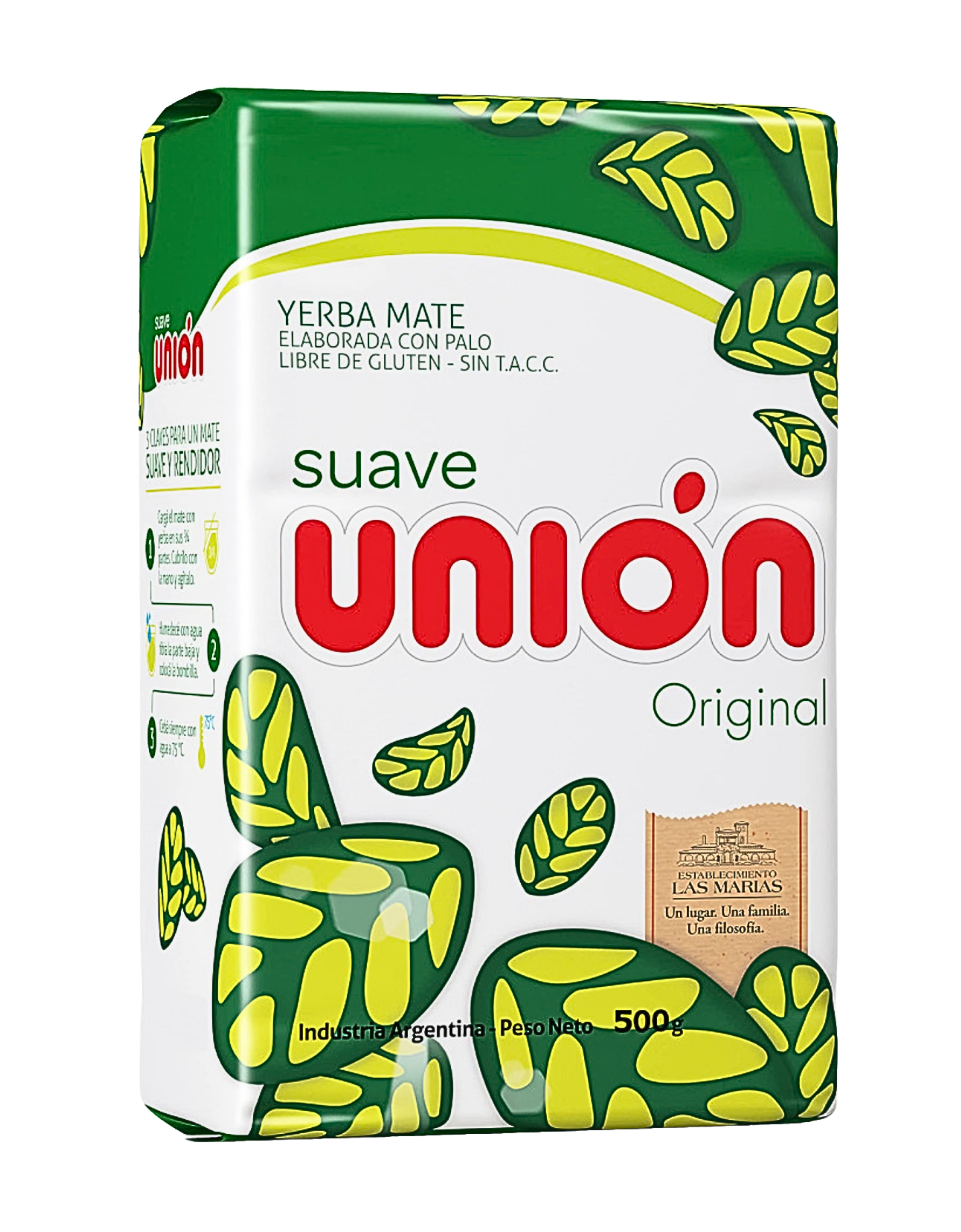 «La yerba Unión es un producto elaborado por el Establecimiento Las Marias, empresa de una larga trayectoria en la produccion de yerba mate e infusiones de la Republica Argentina. Es el unico establecimiento del mundo donde se produce yerba mate a gran escala y de forma integrada.