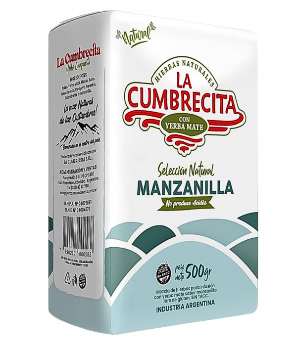 Volver a la tienda Yerba Mate La Cumbrecita Manzanilla 500 gr 5.90€ El precio original era: 5.90€.5.60€El precio actual es: 5.60€. IVA inc.